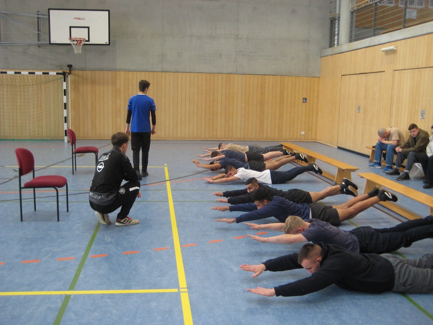 Im Mittelpunkt standen vor allem Fitnessübungen mit dem eigenen Körpergewicht, die man auch ohne Hilfsmittel problemlos in der Zelle wiederholen kann. Das Augenmerk lag dabei auf ausgewogenen Übungen, da viele Jugendliche häufig einseitig trainieren und die Erwärmung und Dehnung vernachlässigen.