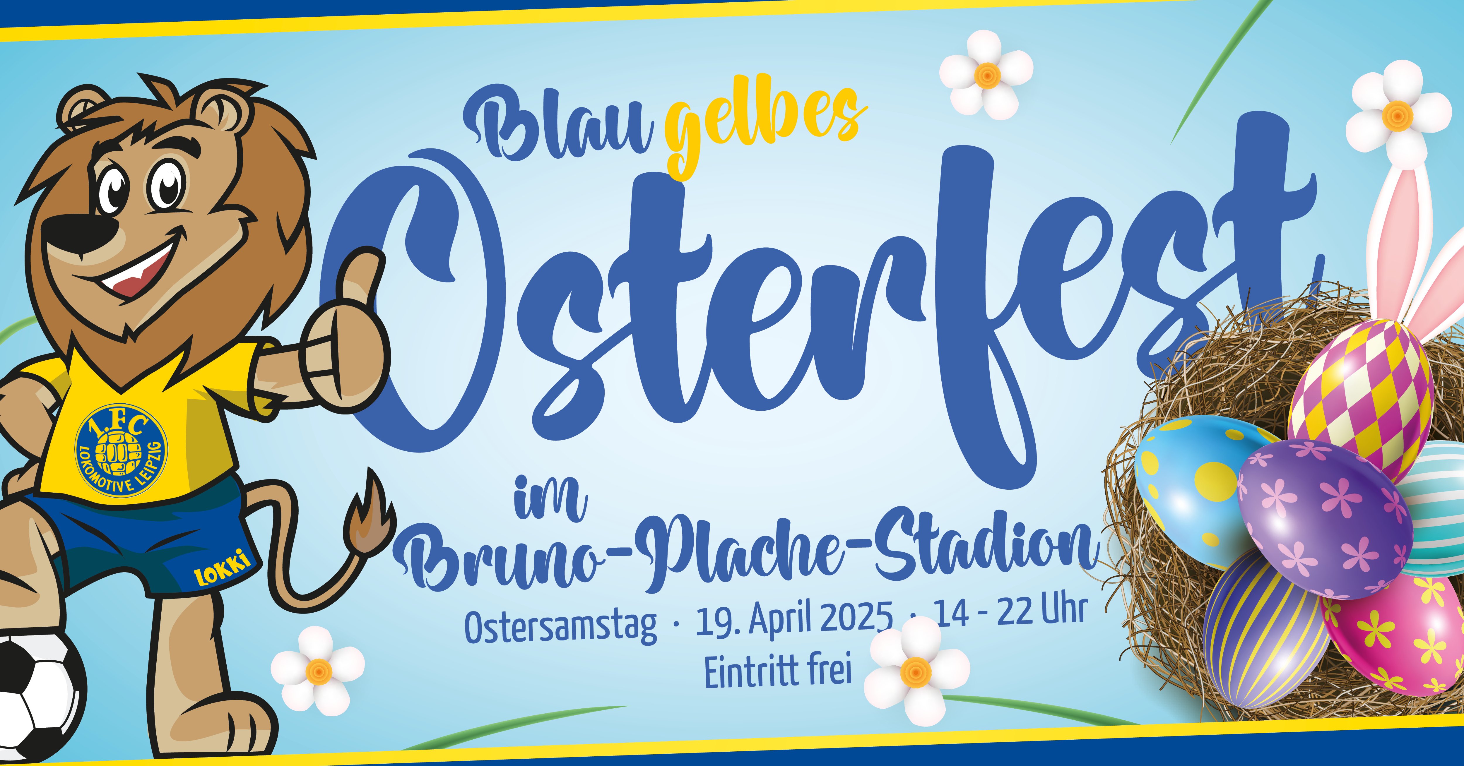 Ostern steht vor der Tür und beim 1. FC Lok Leipzig ist am Ostersamstag richtig was los! Ein Tag voller Spaß, jeder Menge Attraktionen für die ganze Familie und eine fette Feier warten im Bruno-Plache-Stadion auf dich.