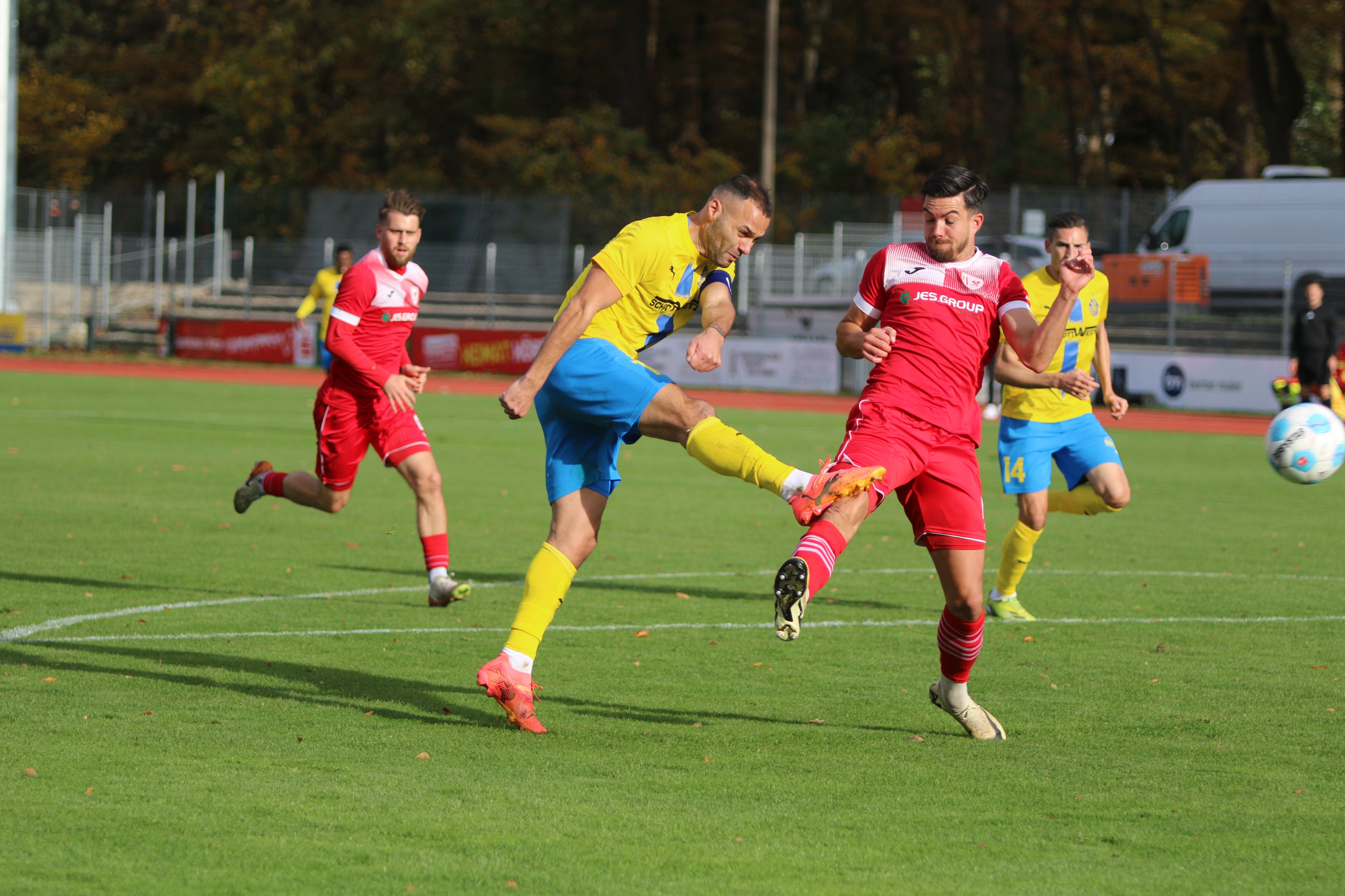 Eine Viertelstunde vor dem Ende besorgte eine Kombination die GFC-Führung: Nach Pass von Daedlov scheiterte Abu-Alfa per Distanzschuss an Naumann, der den Ball aber nur nach vorne abklatschen lassen konnte. Dort rauschte Kocer heran und netzte zum 1:0 ein (74.). Die Messestädter gaben sich allerdings nicht geschlagen, ganz im Gegenteil. Nur fünf Minuten später machte Eichinger nach Pass von Siebeck einige Meter und zog aus knapp 25 Metern ab. Mithilfe des Innenpfosten schlug der platzierte Schuss hinter Jakubov ein, ein absolutes Traumtor des Offensivmanns!
