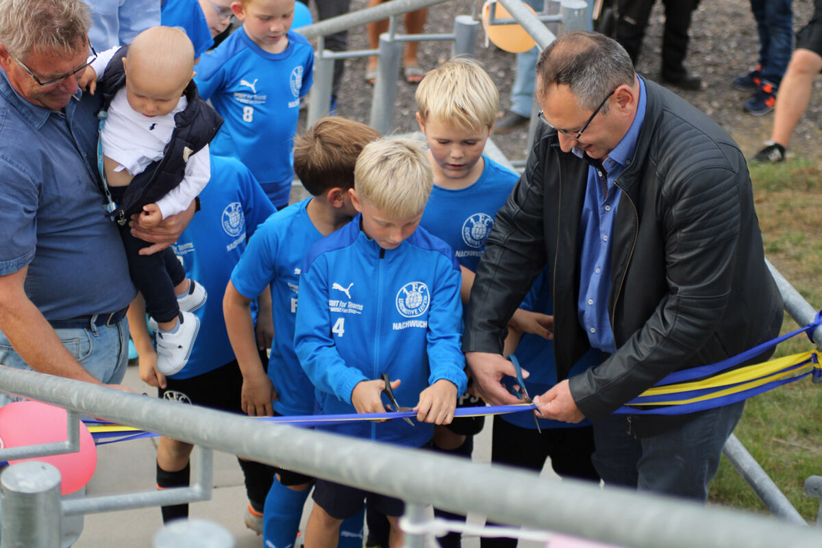 Am gestrigen Donnerstag wurde im Beisein von etwa 50 Unterstützern und unserer U8-Nachwuchsmannschaft nach der Crowdinvesting-Kampagne und längerer Bauzeit endlich unser Familienblock eingeweiht. Damit steigt die offizielle Kapazität des Bruno-Plache-Stadions auf 12.321 Zuschauer.