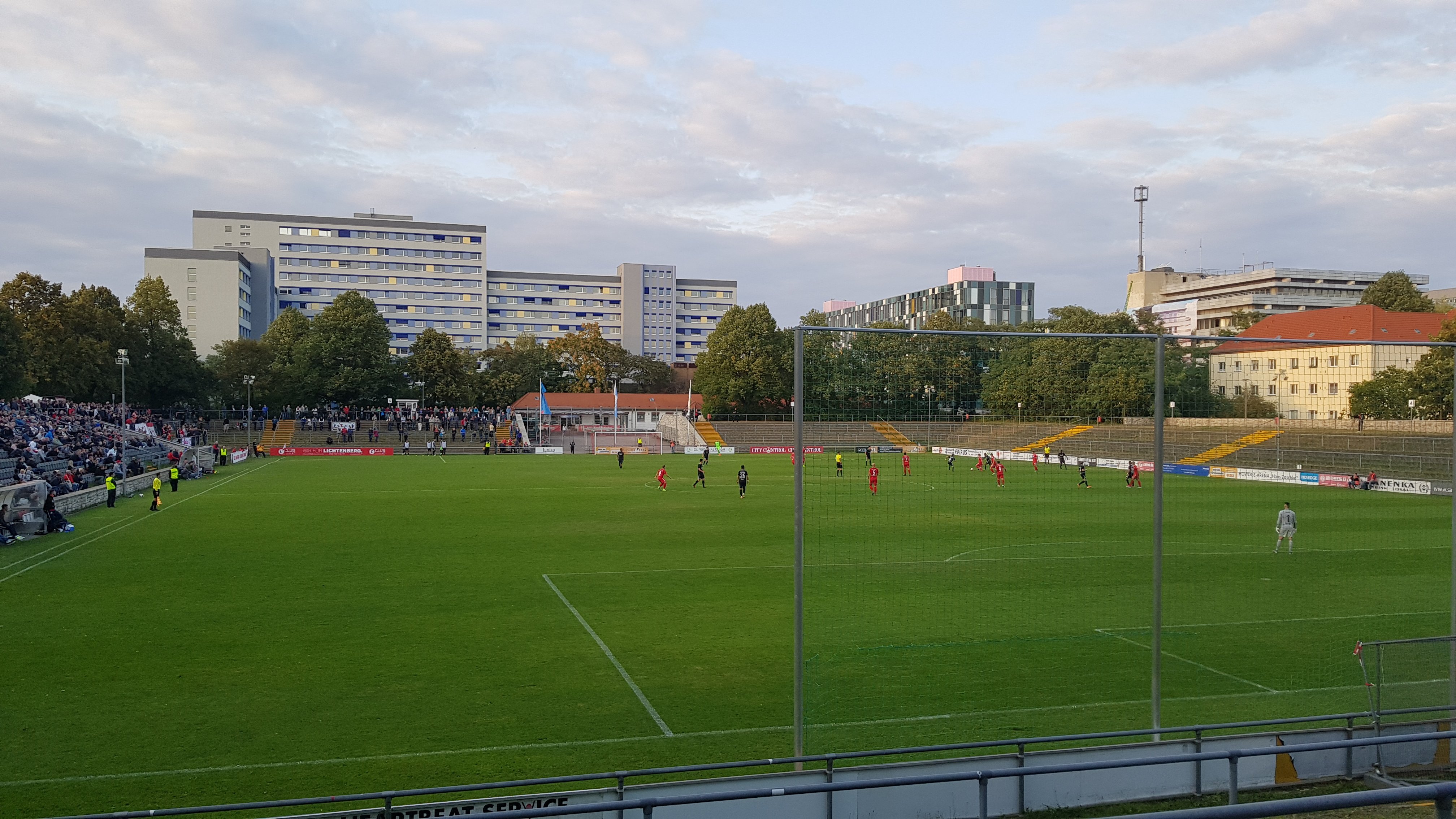 Der Fußweg zum Stadion beträgt circa 10 Minuten.