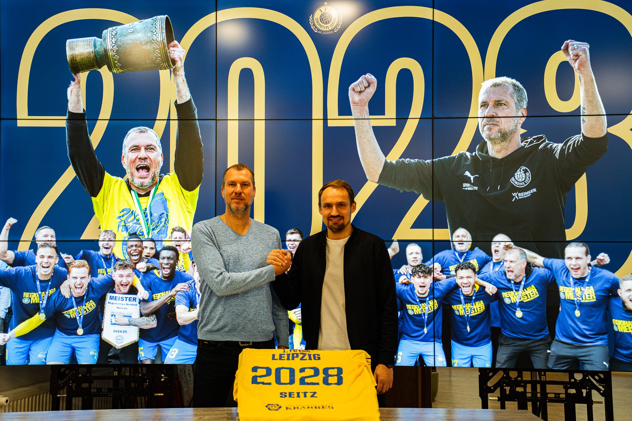 Wir freuen uns, kurz vor dem Start ins Punktspieljahr eine großartige Nachricht verkünden zu können. Cheftrainer Jochen Seitz hat seinen Vertrag beim Ersten Deutschen Meister vorzeitig bis zum Sommer 2028 verlängert. Als Doublesieger - Meisterschaft in der Regionalliga Nordost und Gewinn des Sachsenpokals - beendete der 49-Jahrige seine erste Saison in Leipzig-Probstheida im vergangenen Jahr. Auch in der aktuellen Spielzeit stehen die Blau-Gelben derzeit wieder ganz oben im Tableau. Von seinen bislang 65 Pflichtspielen an der Seitenlinie gewannen wir 46. Hinzu kommen neun Remis und lediglich zehn Niederlagen bei einem Torverhältnis von 151:52.