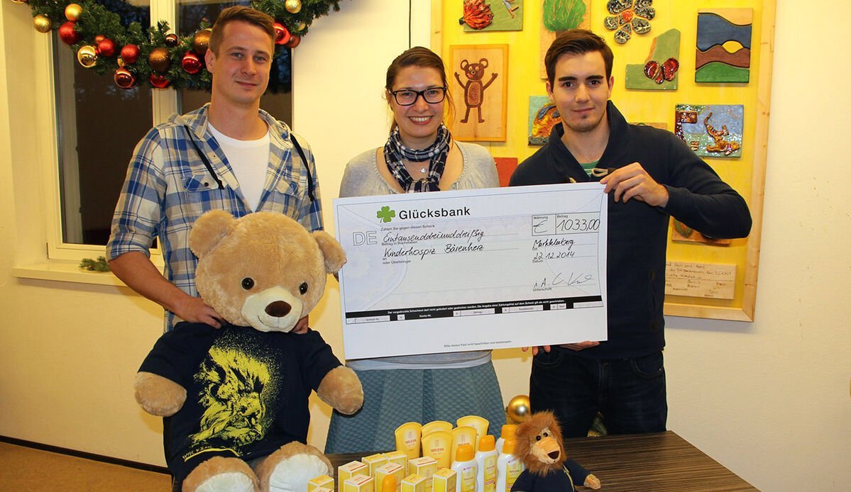 Bereits das zweite Jahr in Folge, hat der 1.FC Lokomotive Leipzig dem Kinderhospiz Bärenherz einen vorweihnachtlichen Besuch abgestattet. Mit dabei hatte man, dank der Unterstützung der Greifapotheke und des Fanshops, erneut einen reich gefüllten Präsentkorb mit Pflegeprodukten und Merchandise Artikel für die todkranken Kinder. Als große Überraschung konnte der 1.FC Lok dem Bärenherz Leipzig e.V. zudem einen Spendenscheck in Höhe von 1.033,00 € überreichen. Diese Summe hatte der Verein mithilfe einer Spendenaktion gesammelt.