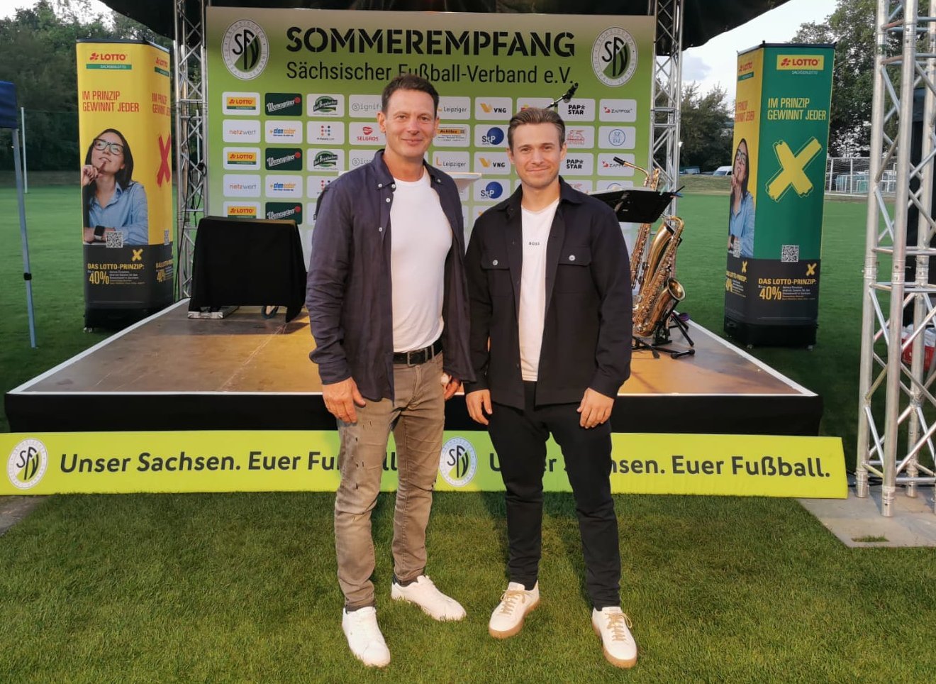Am vergangenen Freitag wurde unsere U19 beim Sommerempfang des Sächsischen Fußballverbandes (SFV) noch einmal ganz offiziell für den in der vergangenen Spielzeit errungenen Landesmeistertitel ausgezeichnet. Bei der Veranstaltung in der Sportschule „Egidius Braun“ in Leipzig-Abtnaundorf erhielt U19-Coach Vincent Löscher in Vertretung der gesamten Mannschaft die Ehrung aus den Händen von SFV-Präsident Hermann Winkler.