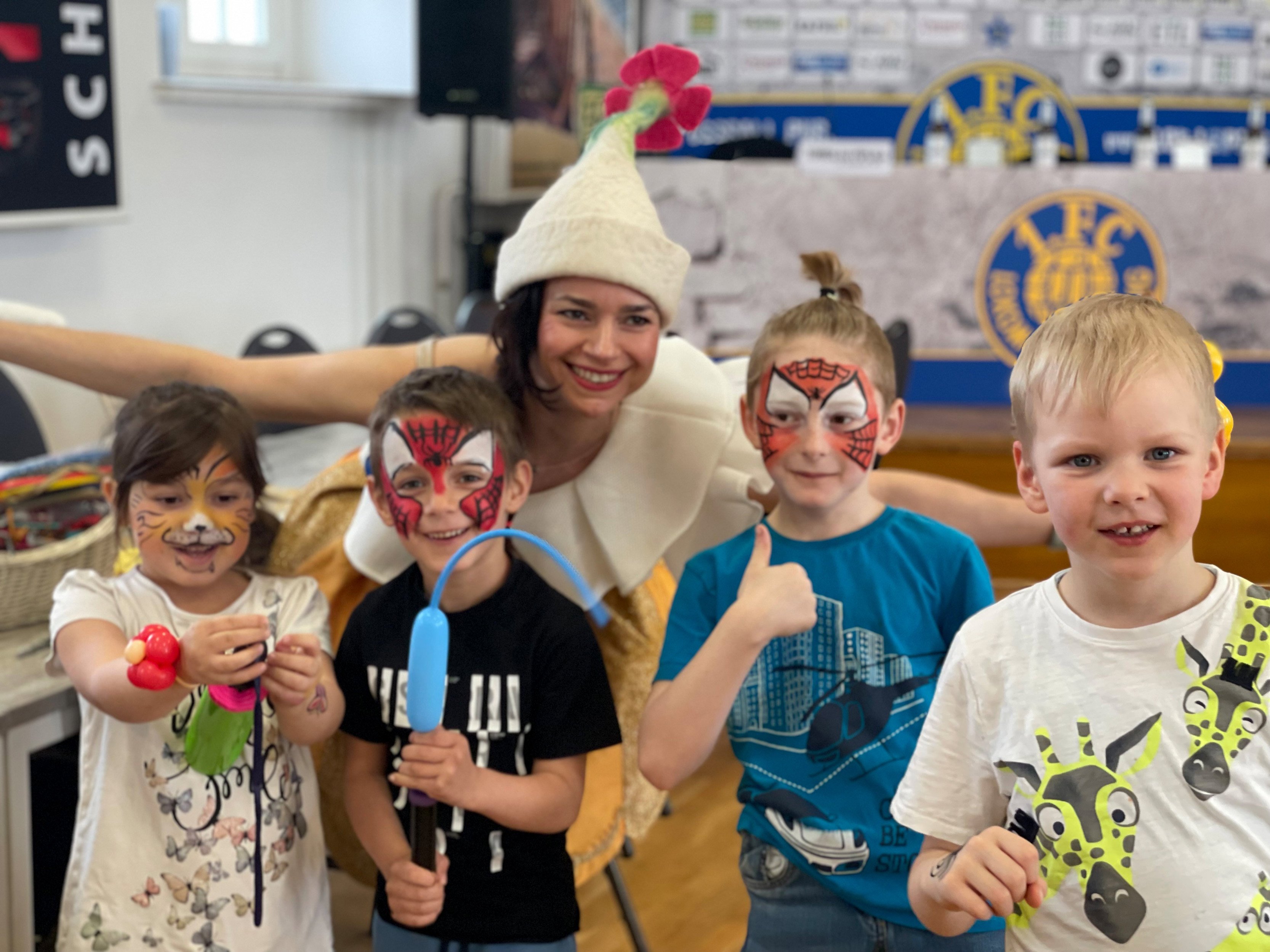 Die Kinder, aus verschiedenen Kinderheimen und Einrichtungen in und um Leipzig, genossen einen unvergesslichen Tag voller Lachen und blau-gelber Nestwärme im Bruno-Plache-Stadion. Lokki, unser Maskottchen, begrüßte die kleinen Gäste mit seinem Charme, während „Paola Pallini“ mit einem zauberhaften Kinder- und Luftballonprogramm für unvergessliche Momente sorgte. Ein herzlicher Dank gilt auch den talentierten Mädels, die die Kinder mit ihren geschickten Händen verzauberten.