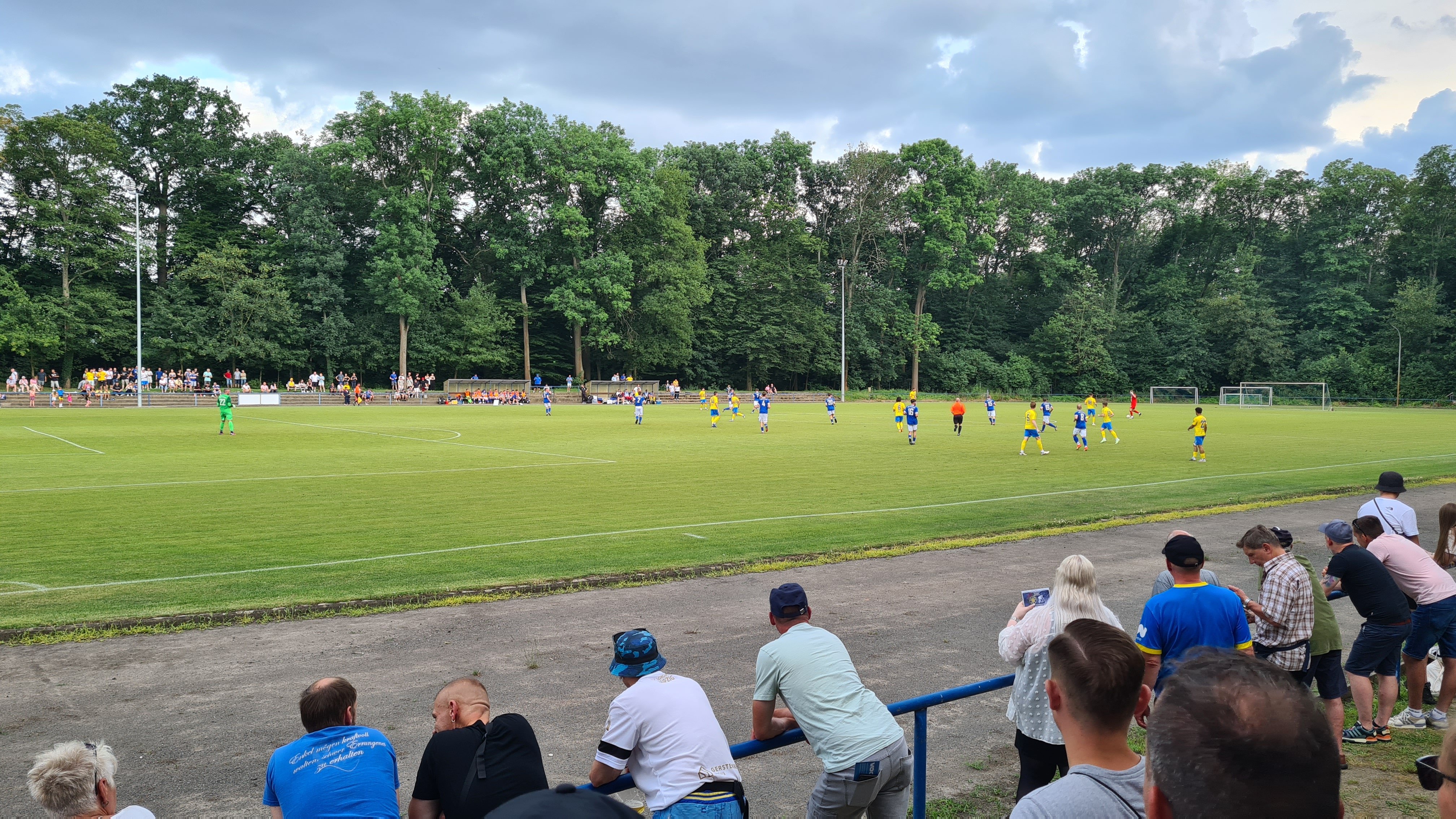 Die über 700 Zuschauer sahen bei teilweise strömenden Gewitterregen unter anderem auch den 19-jährigen Gastspieler Cedric Sponholz vom Halleschen FC.