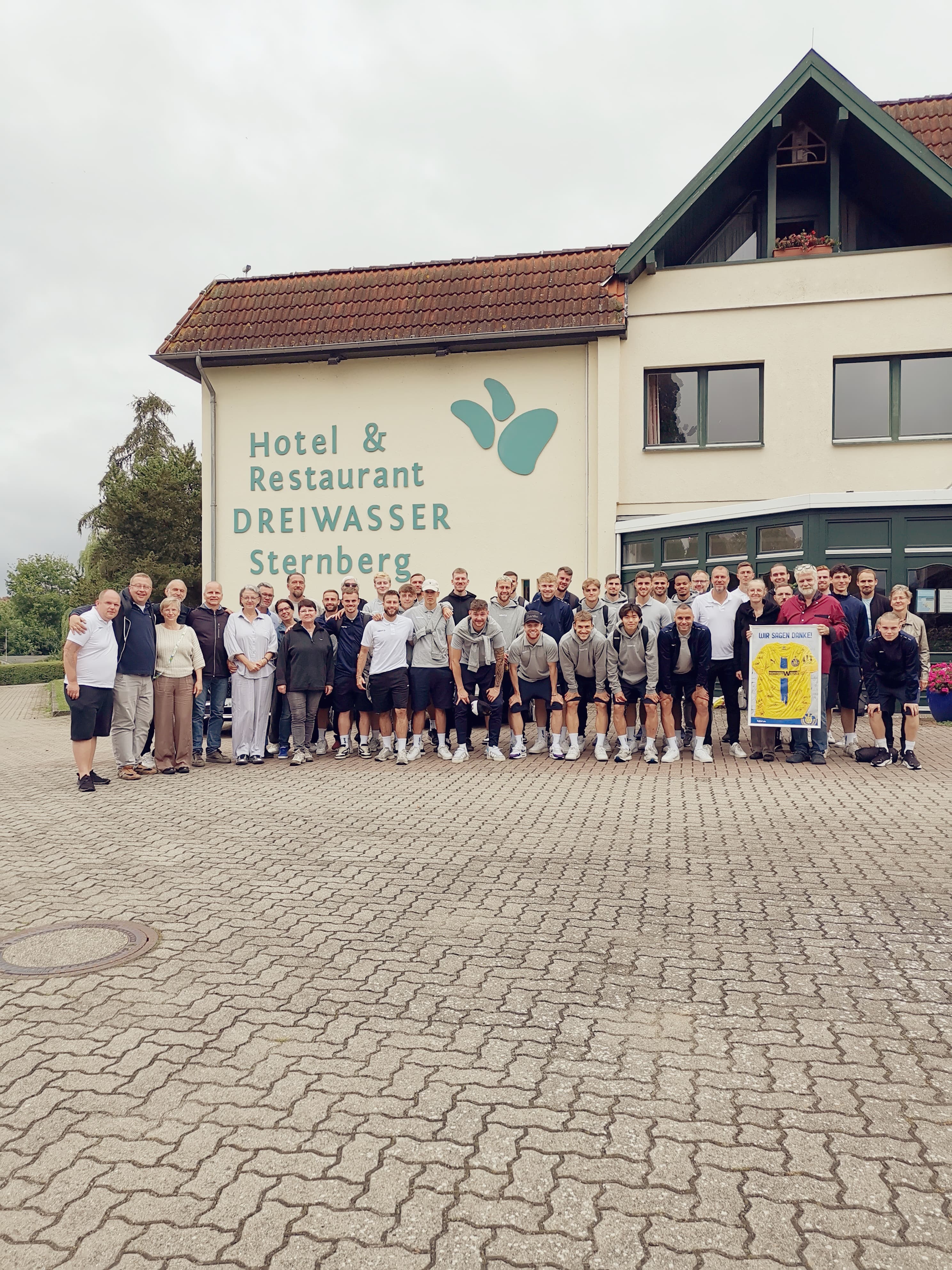 Eine Woche lang hatte unsere Mannschaft optimale Bedingungen: Ob auf den Zimmern, beim auf den Bedarf von Profisportlern zugeschnittenen Essen oder auf dem direkt am Hotel gelegenen, top gepflegten Trainingsplatz – überall wurden unsere Wünsche von den Augen abgelesen und erfüllt. Im Ergebnis konnte sich unser Team darauf konzentrieren, wofür wir hier waren: Intensive und qualitativ hochwertige Trainingseinheiten absolvieren und dazwischen gut regenerieren. Mit dabei waren in den letzten Tagen auch insgesamt elf Sponsoren, die die Mannschaft nach Sternberg begleitet haben, die tolle Erlebnisse sammeln konnten und Einblicke in die Arbeit unseres Regionalliga-Teams bekamen – inklusive eines souveränen 3:0 Testspielsiegs gegen die Zweite Mannschaft des Hamburger SV am Freitag.