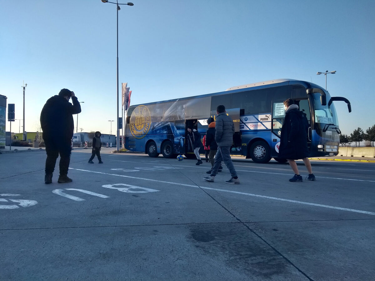 Am nächsten Morgen (13.3.) startete der Bus mit 50 Kindern und Betreuern in Richtung Deutschland. Nach wenigen Kilometern stoppte die Fahrt an der rumänisch-ungarischen Grenze. Knapp 13 Stunden dauerte es, bis zusätzlich nötige Papiere am Grenzübergang ausgestellt werden konnten. Trotz dieser Wartezeit und den Strapazen, die solch eine Fahrt mit sich bringt, blieben alle Kinder und Jugendliche stehts gelassen. Gemeinsam mit den drei Busfahrern wurde an Bord gesungen und gelacht. Momente, in denen der Krieg für ganz kurze Momente vergessen schien. Auf einem Rastplatz an der Grenze von Ungarn zur Slowakei wurde getobt und Fußball gespielt. In Tschechien sorgte ein nicht ganz so gesunder Snack bestehend aus Burgern, Pommes und Cola für Freude.