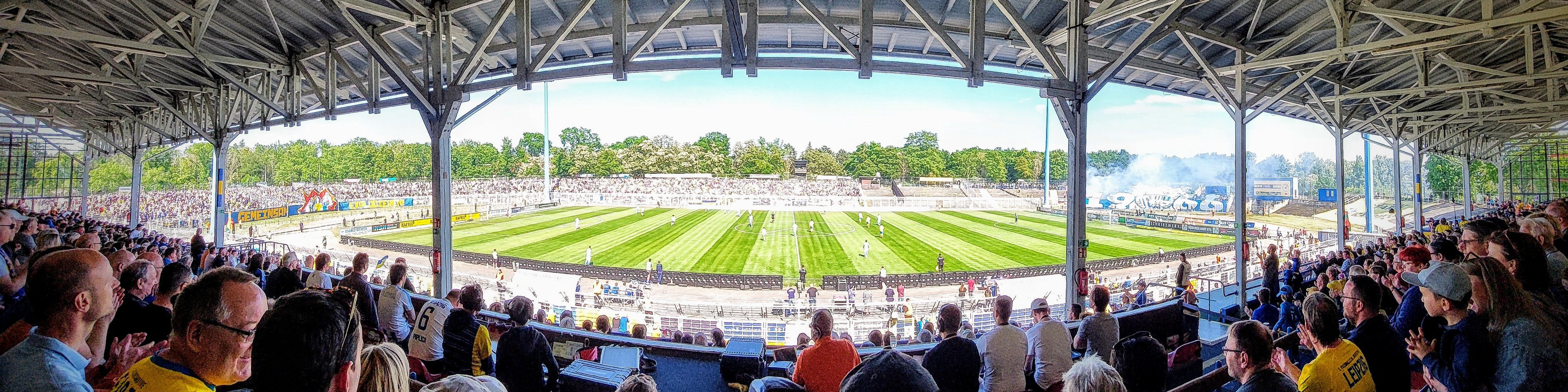 Die nach dem Zweiten Weltkrieg zu Ehren eines kommunistischen Widerstandskämpfers in Bruno-Plache-Stadion umbenannte Heimstätte wurde ohne Unterbrechung nie wieder verlassen. Nicht einmal das sportliche Mittelmaß konnte gehalten werden, die Jahre bis 1944 bilden den rapiden Absturz vom Rekordmeister zur grauen Maus. Als sportliches Vorzeige-Negativ-Erlebnis hierfür gilt das letzte Spieljahr vor dem Ende des Zweiten Weltkrieges, in welchem erstmalig während des schon halben Jahrhunderts Vereinsgeschichte ein Abstieg aus der Elite-Klasse, der sächsischen Gauliga, zu verzeichnen war.